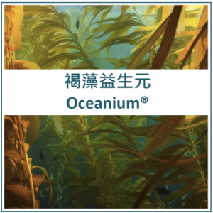 由英國Oceanium原料研究公司開發出的褐藻益生元,褐藻益生元萃取自具有強韌特性與能對抗極端環境的褐藻(Ascophyllum nodosum),此褐藻種植於北大西洋的優質褐藻農場,具有透明的可追溯供應鏈,富含75%的褐藻醣膠與海藻纖維。